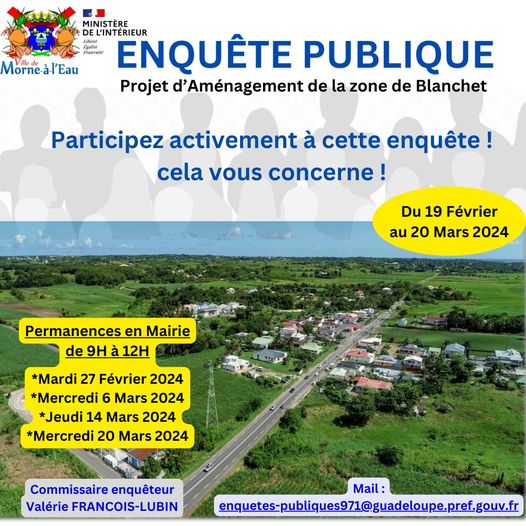 La ville et Gimdom encouragent une participation active à l’enquête publique. “C’est une chance unique pour les habitants de s’exprimer sur un projet qui façonnera l’avenir de Morne-à-l’Eau,” souligne le maire. Que ce soit pour partager une analyse sur les implications des logements sociaux, discuter des risques environnementaux, ou encore souligner l’importance de la planification des infrastructures éducatives, chaque contribution compte.