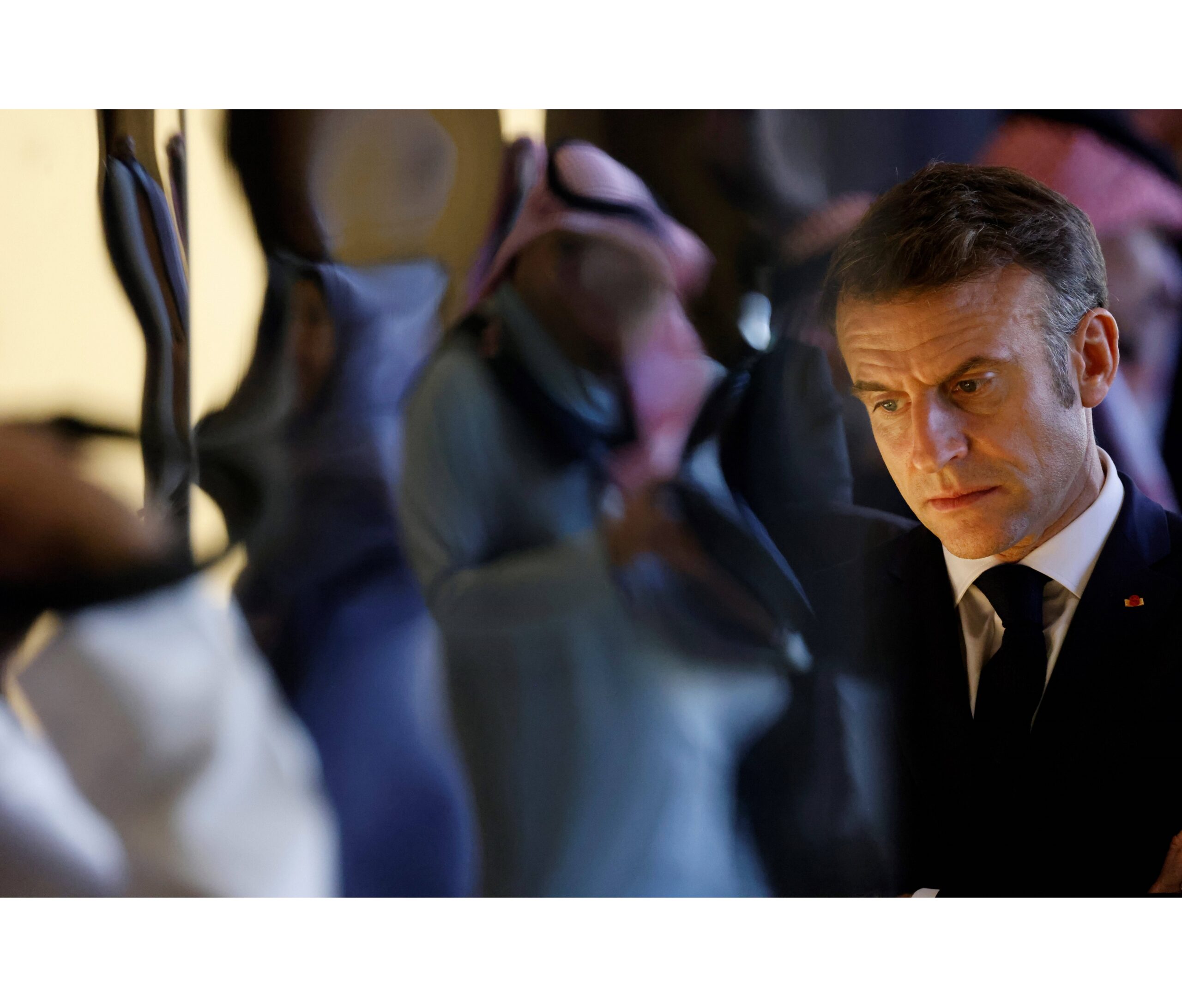 Le président de la République Emmanuel Macron conclut sa visite d'État en Arabie saoudite le 4 décembre 2024 dans l'oasis d'AlUla, projet touristique emblématique du royaume. Photo : Ludovic Marin - Pool / Sipa